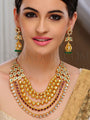 Pakhi Necklace Set with Earrings in gold finish studded with pachi kundan, rhodonite and jade