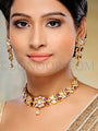 Pal Necklace Set with Earrings in dull gold finish studded with kundan and rhodonite stones