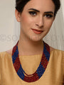 | Pari necklace in multi layered with red and blue iolite beads strings |
