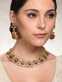 Prithika Necklace Set with Earrings in dull gold finish studded with pachi kundan and meena kari
