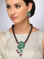 Pendant Set with Earrings in silver rhodium finish studded with cubic zircons and blue iolite stones stringing in fresh water pearls