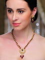 Ira Pendant Set with Earrings in dull gold finish studded with rhodonite, pachi kundan and ruby