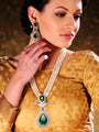 Jalsa Pendant Set with Earrings in dull gold finish studded with kundan and fresh water pearls