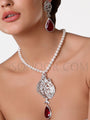 Jilav Pendant Set with Earrings in silver rodium finish studded with cubic zircons and deep blue saphire czee stones with stringing done in deep blue saphire czee beads