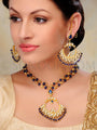 Maina Pendant Set with Earrings in dull gold finish studded with onyx, cubic zircons and kundan stones
