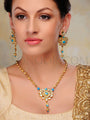 Parnvi Pendant Set with Earrings in dull gold finish studded with kundan and turquoise stones