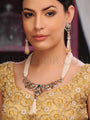 Prisha Pendant Set with Earrings in silver victorian finish studded with cubic zircons and green onyx stones stringing in fresh water pearls