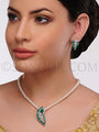 Sehar Rhodium finish cubic zircons and red jade stones Pendant Set