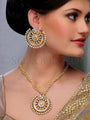 Shulika Pendant Set with Earrings dull gold finish (handcrafted) studded with jade, and pachi kundan