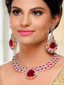 Deema American Diamond Red Stone Necklace Set