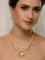 Diya Necklace Set with Earrings in dull gold finish studded with pachi kundan and pearls