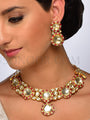 Fariya Necklace Set with Earrings in gold finish studded with kundan and ruby stones