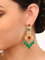 Earrings in dull gold finish studded with kundan, agate, and jade stones