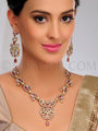 Sasha Necklace Set with Earrings in dull gold finish studded with cubic zircons, kundan, and jade